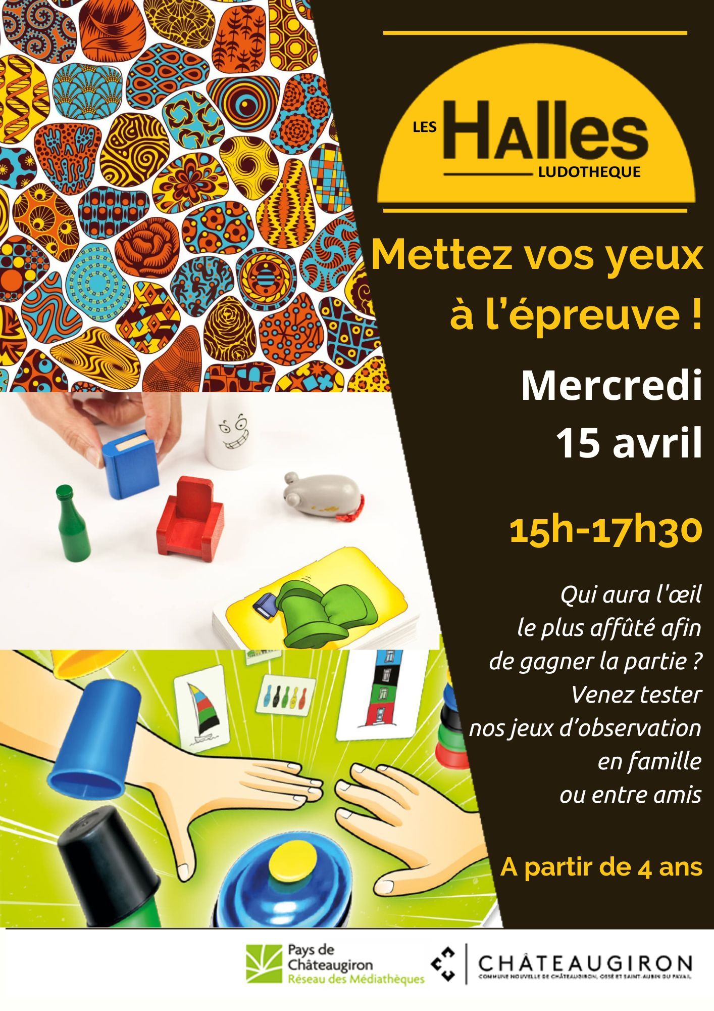 Nous vous attendons, le mercredi 15 avril de 15h à 17h30 à la médiathèque Les Halles.
