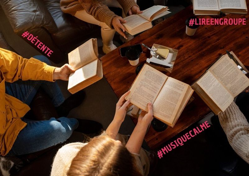 Un moment de lecture partagée, pour prendre le temps de lire dans une ambiance cocooning, avec thé/chocolat chaud et fond musical relaxant.